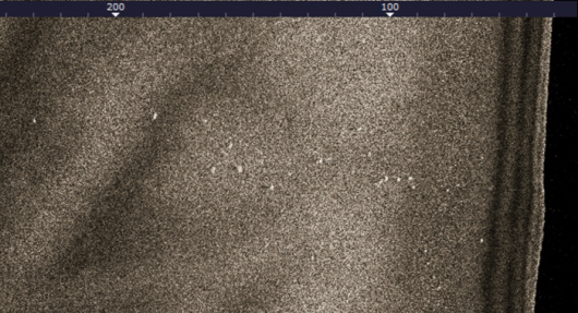 Гидролокационное изображение россыпи контейнеров с ТРО и ТРО без упаковки на полигоне «Впадина-Юг»