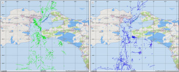 Рис. 3б. Карты распределения пленочных загрязнений в Керченском проливе и на прилегающих акваториях в 2019 и 2020 гг.