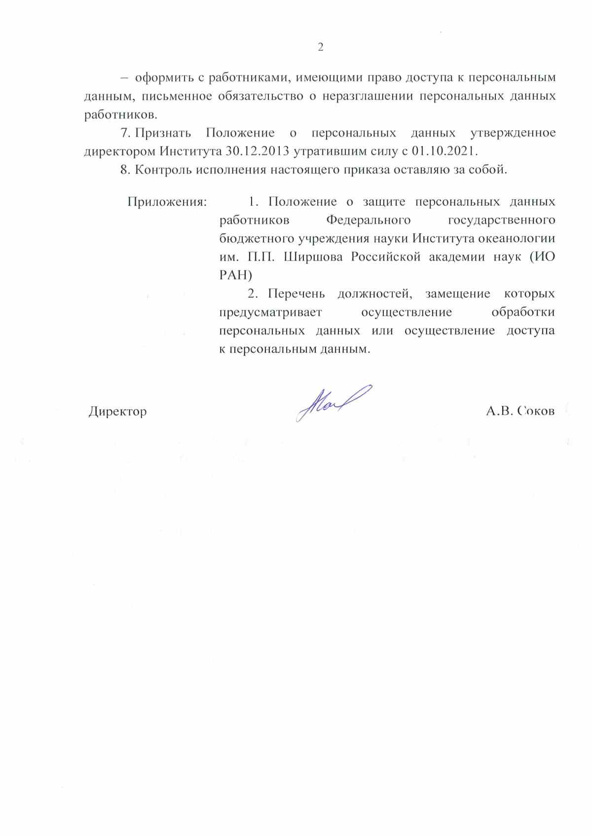 На основании гл. 14 Трудового кодекса Российской Федерации и Федерального закона от 27.07.2006 № 152-ФЗ «0 персональных данных» и определении порядка обращения с персональными данными работников Института океанологии им. П.П. Ширшова Российской академии наук