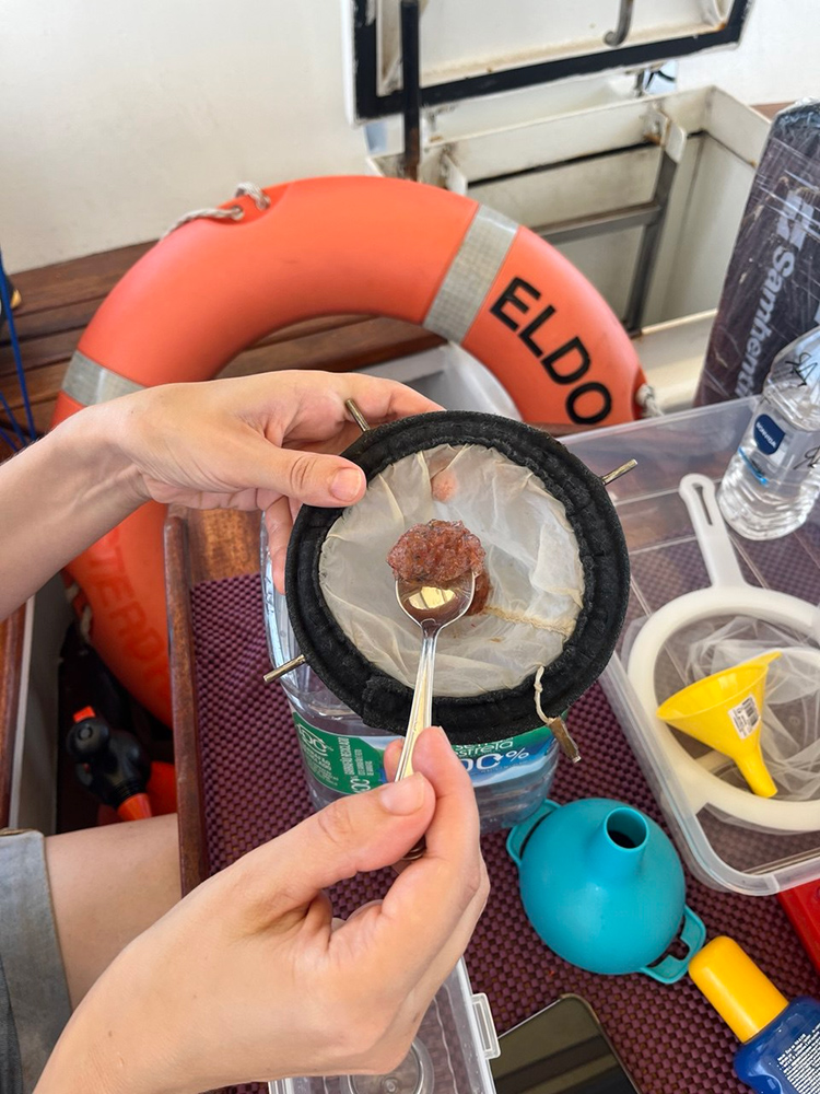 Если в прошлых рейсах мы отрабатывали методику глубоководного зоопланктонного лова, то теперь сосредоточились на эпипелагиали — верхнем, солнечном слое открытого океана, где сосредоточены основные продукционные процессы. В ходе работ измерялась прозрачность воды по диску Секки, фиксировались температурные профили, проводился отбор проб фитопланктона до глубины 70 м и зоопланктона — до 200 м.
